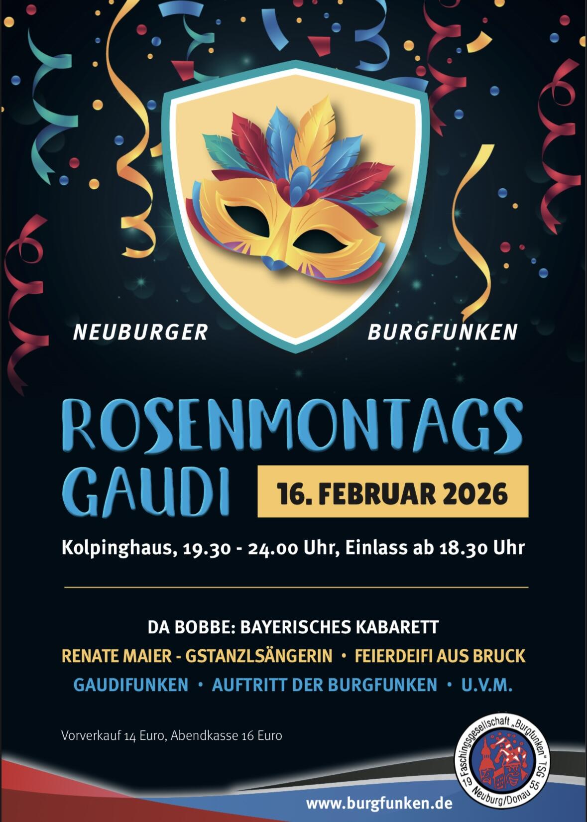 Rosenmontagsgaudi mit den Neuburger Burgfunken.